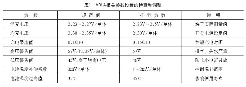 ??VRLA相關參數設置的檢查和調整如表1所示。