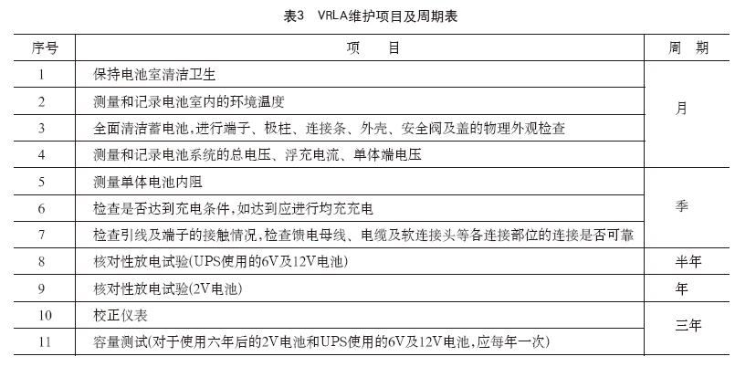 ??VRLA維護項目及周期表如表3所示。
