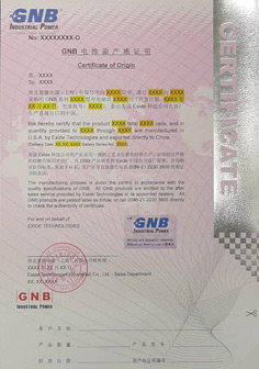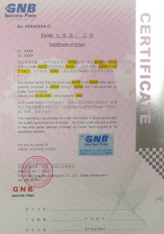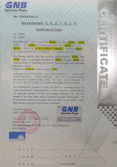 ??巳鹿镜腟onnenschein陽光及GNB系列電池為原裝進口電池,為德國、美國、西班牙及葡萄牙原廠生產后直接出口到??巳轮袊?。請在購買電池時向經銷商要求出具該電池的原產地證明,并檢查該證明是否有??巳码娫矗ㄉ虾#┯邢薰句N售部公章,樣本如下。